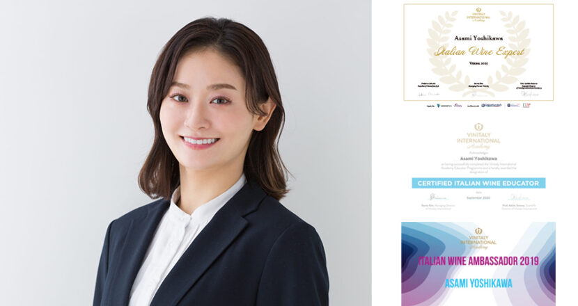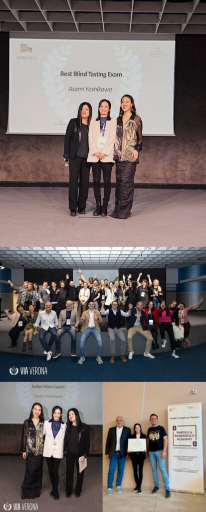 2024年、イタリア・ヴェローナに本部を置くVinitaly International Academy(VIA)にて、世界22名のみが認定された最上位資格イタリアンワイン・エキスパートに、テイスティング成績世界1位で合格。同資格において日本人初、かつ唯一の認定者となる。